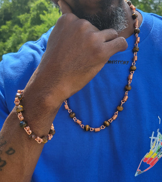 Tiger Eye Copper Link Neck Chain